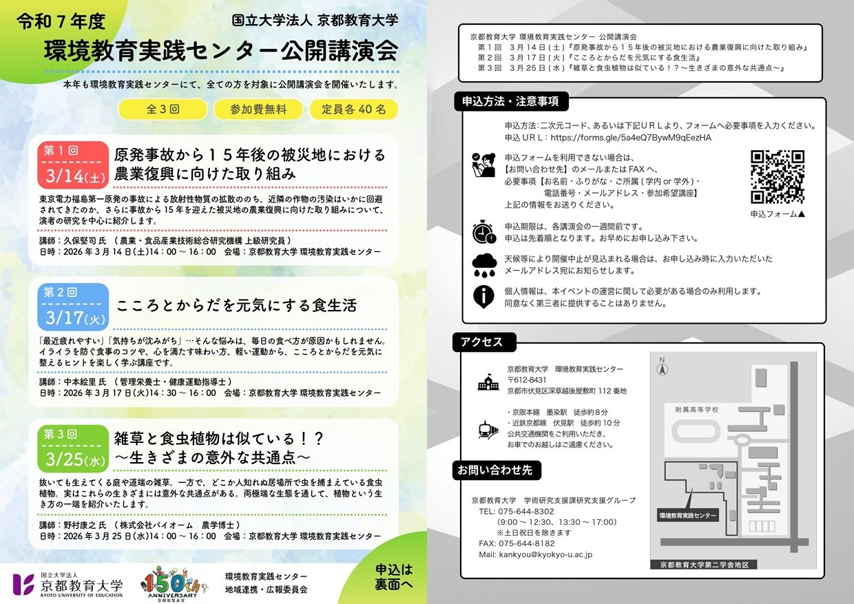 場 所:京都教育大学 環境教育実践センター 講義室